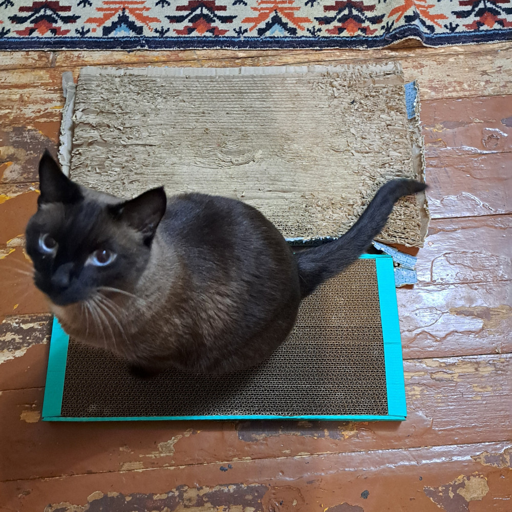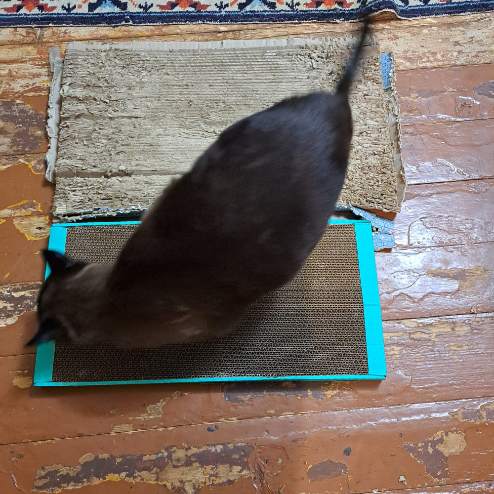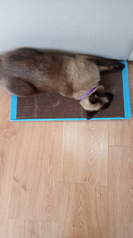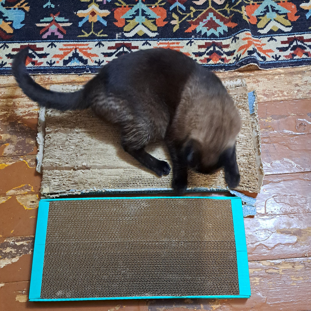 Спасибо за быструю доставку. А вот сама когтеточка оказалась не интересна нашему кому, пока распаковывала упаковкой интересовался, он любитель целлофана, ни как лежанка, ни как когтеточка не используется. Качество понравилось, поэтому ставлю пять звёзд, а то что кот не оценил, так это его личный выбор😅