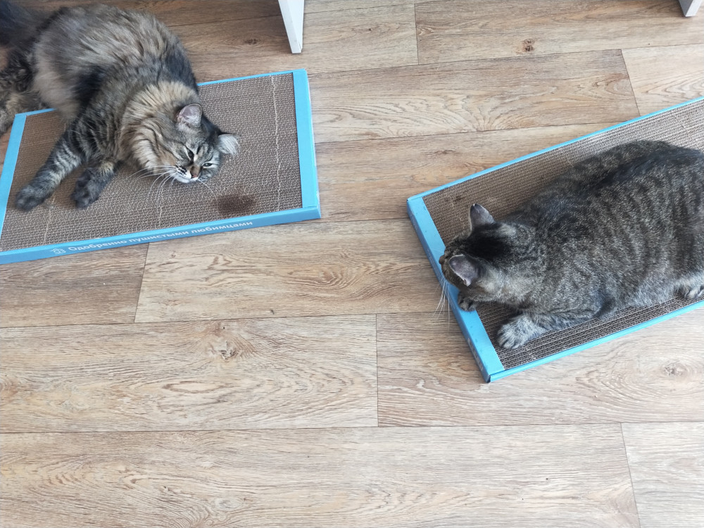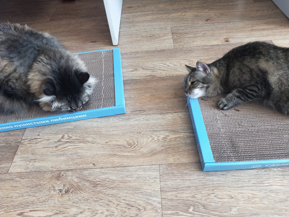 Замечательная когтеточка. И полежать, и когти поточить, и погрызть. Кошки сразу оценили.
