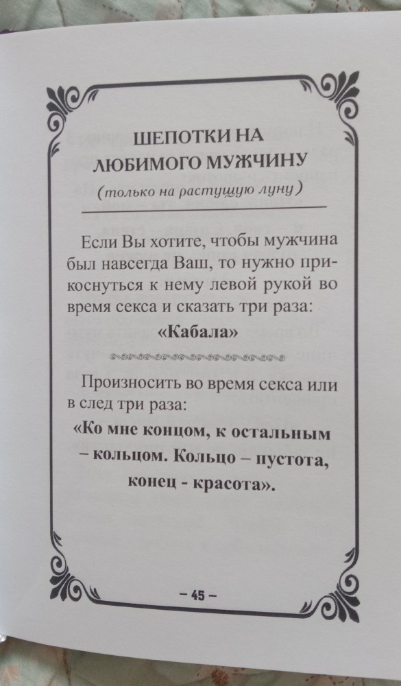 Шепотки-скоропомощники на разные случаи жизниВ данный момент этот товар отсутствует в продаже. Возможно, у нас найдется аналогичный или похожий товар здесь. Шепоток — это старинный метод наговора для изменения ситуации и получения желаемого. Это возможность донести свои просьбы до Высших сил. Я уверена, что кто шепотком владеет и пользуется, тому удача сама приходит. И все мои шепотки связаны не с темными силами, а с силами добра, и используются только во благо людей.В этой книге Вы найдете шепотки, которые используются моим родом на протяжении веков. Основная цель моей жизни — это помощь людям. И выполняя свое предназначение, я делюсь с Вами древними знаниями своего рода, чтобы Вы могли сделать свою жизнь счастливой! Время идет, мы меняемся, и только магия шепотка неизменна. Научитесь искусству шепотка, и Вы сами убедитесь, что чудеса случаются и счастье есть! |