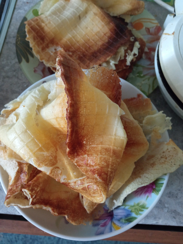 Вкус напоминает как-будто из манки, готовить измучилась - ни на сковороде, ни в вафельнице не смогла нормально приготовить. на сковороде слишком толсто, развалились при переворачивании. в вафельнице постоянно прилипают, разделяются на две части