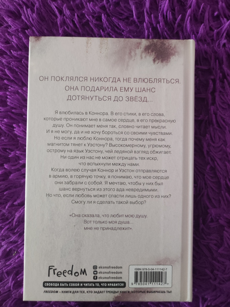 💳 Оплатить за товар можно при получении 🇰🇿 Есть бесплатная доставка по Казахстану от 1 дня 🎁 Копите бонусы с каждой покупки Серия: Freedom. Романтическая проза Эммы Скотт Я влюбилась в Коннора. В его стихи, в его слова, которые проникают мне в самое сердце, в его прекрасную душу. Он понимает меня так, словно читает мысли. И я не могу, да и не хочу бороться со своими чувствами. Но если я люблю Коннора, тогда почему меня как магнитом тянет к Уэстону? Высокомерному, угрюмому, острому на язык Уэстону, чей ледяной взгляд обжигает. Ни один из нас не может отрицать тех искр, что вспыхнули между нами. Когда волею случая Коннор и Уэстон отправляются в армию, в горячую точку, я понимаю, что мое сердце они забрали с собой. Я мечтаю, чтобы у них был шанс вернуться из этого ада невредимыми. Но что, если любовь может спасти лишь одного из них? Смогу ли я сделать такой выбор? |