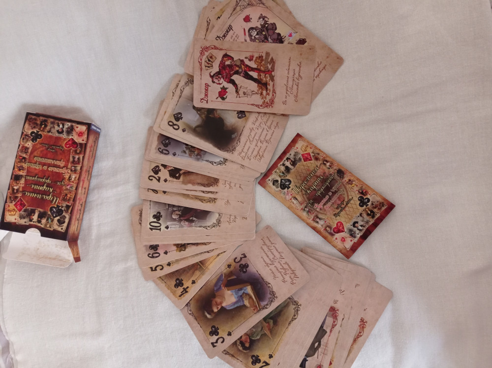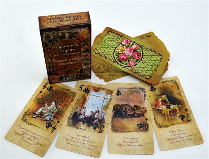 Игральные карты для предсказаний. Красные и черные бриллиантыВ данный момент этот товар отсутствует в продаже. Возможно, у нас найдется аналогичный или похожий товар здесь. История игральных карт восходит к XII веку. Первоначально такие карты использовались для игры и пасьянсов, а позднее их стали использовать также для гадания и предсказания будущего. Гадание на игральных картах просто для изучения, а результаты его максимально точны. Колода состоит из карт четырех мастей — пики, бубны, трефы, червы — от Туза до Двойки и двух Джокеров. В инструкции к колоде описаны значения мастей и приведены примеры раскладов. Каждая карта нарисована в старинном стиле и имеет описание значения. |