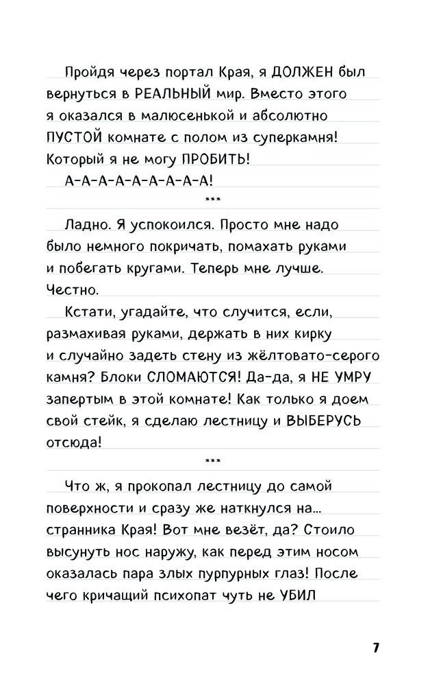 💳 Оплатить за товар можно при получении 🇰🇿 Есть бесплатная доставка по Казахстану 🎁 Копите бонусы с каждой покупки Серия: Майнкрафт. Дневник Стива Стив наконец-то очутился в Крае, удивительном месте, которое должно привести его домой. От него потребуется много упорства, силы и смелости (а ещё стойкость к дурным запахам), чтобы победить дракона и не попасться в лапы странникам Края. Стив не раз упадёт духом и не единожды опустит руки, съест много стейков и золотых яблок, прежде чем всё-таки выиграть и эту битву. Но что дальше? Как найти портал в город Края? Где отыскать сокровища? Как уберечься от затейников-коробейников? И что ждёт Стива в самом конце? |
