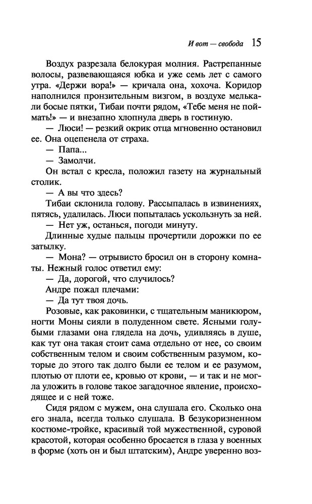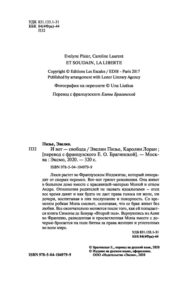 И вот - свободаВ данный момент этот товар отсутствует в продаже. Возможно, у нас найдется аналогичный или похожий товар здесь. Серия: Смелая. Её невероятная история Люси растет во Французском Индокитае, который лихорадит от скорых перемен. Вот-вот грянет революция. Она живет в большом доме вместе с красавицей-матерью Моной и отцом Андре. Отношения родителей не назвать идеальными — отец все время давит и как будто не дает права голоса ни жене, ни дочери, воспитывая в них послушание и покорность. Со временем робкая Мона смелеет, осознавая, что ее брак живет без любви. Все окончательно меняется после того, как ей попадается книга Симоны де Бовуар «Второй пол». Вернувшись из Азии во Францию разведенная и просветленная Мона вместе с дочерью бросается на поле битвы за права женщин и угнетенных во всем мире. |