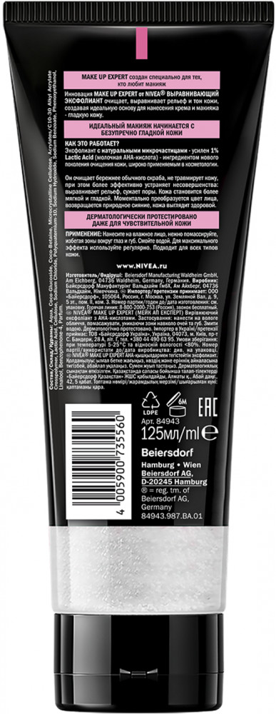NIVEA Пилинг-эксфолиант для лица выравнивающий с aha-кислотамиВ данный момент этот товар отсутствует в продаже. Возможно, у нас найдется аналогичный или похожий товар здесь. Инновационный «Выравнивающий эксфолиант» Make Up Expert от Nivea создан специально для тех, кто любит макияж! Формула содержит натуральные отшелушивающие частицы и 1% Lactic Acid (молочная АНА-кислота) — ингредиент нового поколения в очистке кожи, широко использующийся в косметологии. Эксфолиант очищает, выравнивает рельеф и тон кожи, создавая идеальную основу для нанесения крема и макияжа — гладкую кожу. В отличие от обычного скраба, эксфолиант бережно и нежно удаляет загрязнения, не травмируя кожу, а также эффективно устраняет недостатки кожи: сужает поры, улучшает цвет лица, возвращая коже естественное сияние. Кожа превращается в мягкую, гладкую и имеет здоровый вид. Идеальный макияж начинается с безупречно гладкой кожи! |