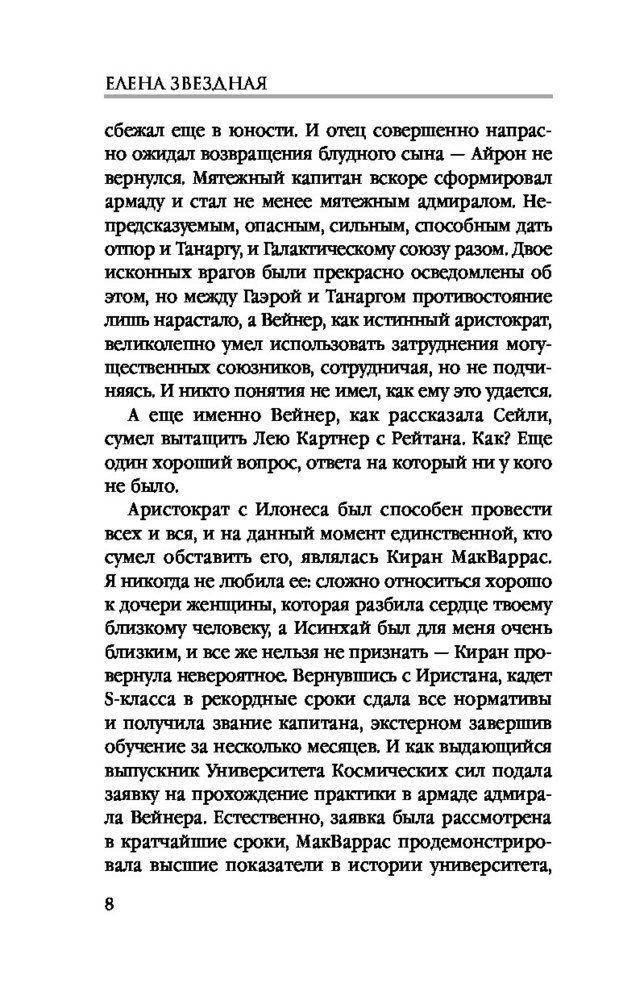 | Современная российская писательница, автор книг в жанре любовного фэнтези и боевой фантастики. Биографические сведения о жизни Елены Звездной крайне скудны, однако доподлинно известно, что романистка родилась 22 ноября 1981 года, сейчас живет в городе Тирасполе Республики Молдова, замужем, воспитывает дочь. Елена признается, что не считает себя писательницей и даже особенно не стремиться ею стать, хотя уже несколько лет успешно издает свои произведения под литературным псевдонимом Звездной, а... |