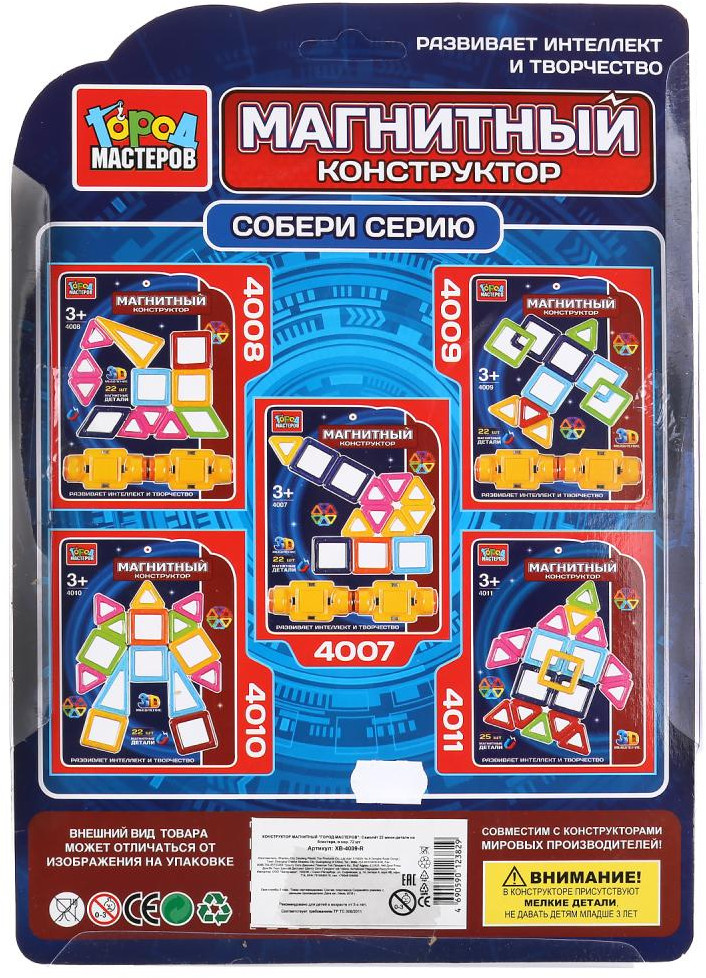Город мастеров Конструктор магнитныйВ данный момент этот товар отсутствует в продаже. Возможно, у нас найдется аналогичный или похожий товар здесь. Магнитный конструктор ТМ «Город мастеров» — это лучшая игра для развития интеллекта и творческого мышления. Набор состоит из палочек и шариков. Изготовлен из высококачественного пластика с элементами из металла и с магнитами. В процессе игры развивается интеллект и творческие способности, ребенок приобретает первоначальные знания о формах. |