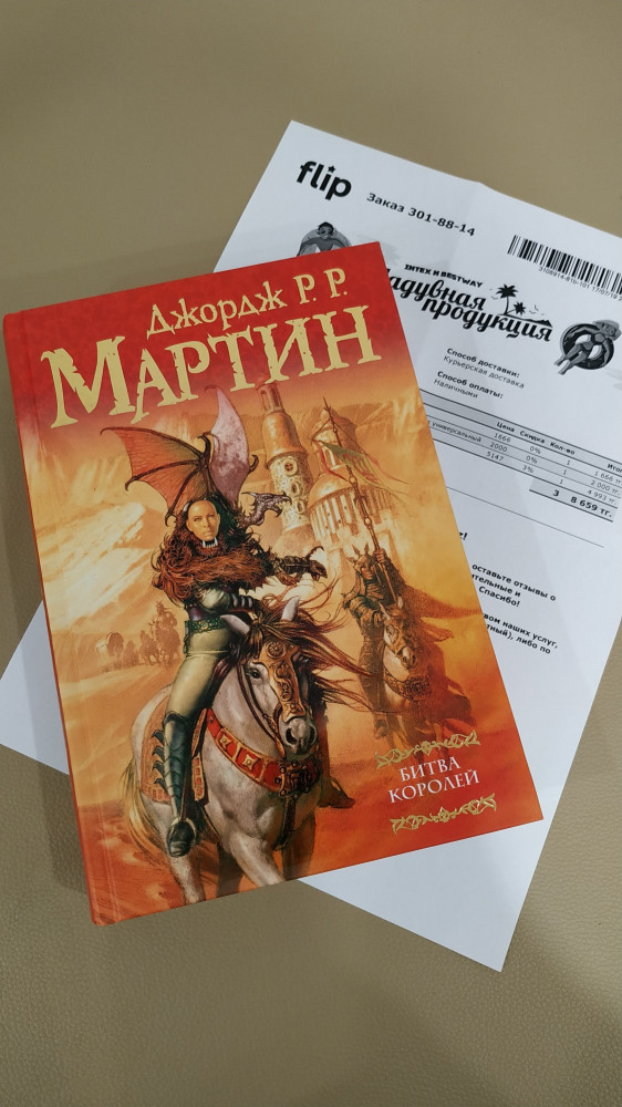 Распинаться о том, как прекрасен сюжет, язык, стиль и персонажи я не стану – если вы читали первую книгу серии, вы должны знать о том, как талантлив Мартин. Ну а если вы не читали Игру престолов, то беритесь за нее. Понять происходящее в Битве королей просто невозможно, если вы не знакомы с первой книгой, даже и не пытайтесь. Даже если вы смотрели сериал, тоже не советую браться за прочтение саги, упустив первую книгу. Потому что большинство героев никак не запомнившихся в сериале, или вовсе упущенных сценаристами, во второй книге играю важную роль. Хотелось бы отметить качество именно этого издания Битвы королей. На картинке на сайте не совсем видно – но именно это издание очень качественное и красиво оформленное. Цена довольно высока, но получив книгу я поняла что оно того стоит. В отличие от более дешевого издания книги, здесь бумага – не газетная, краска не пачкает пальцы, обложка красивая, в конце книги находиться приложение с понятным описанием правящих Домов.