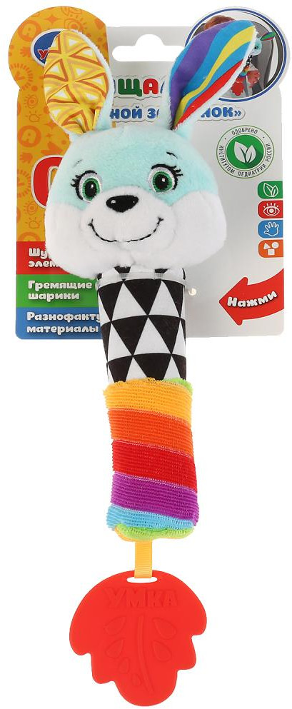 💳 Оплатить за товар можно при получении 🇰🇿 Есть бесплатная доставка по Казахстану от 1 дня 🎁 Копите бонусы с каждой покупки Игрушка пищалка «Зайка» ТМ «УМка» для маленьких любознаек. Игрушка разработана в соответствии с первоначальными потребностями малыша с самого рождения. Выполнена из мягкого текстильного гипоаллергенного материала, окрашена в яркие цвета. Прорезыватель в форме листика из качественной пластмассы пригодится для малыша, когда у него появляются зубки. Благодаря компактным размерам погремушку удобно брать с собой на прогулку и в поездки |