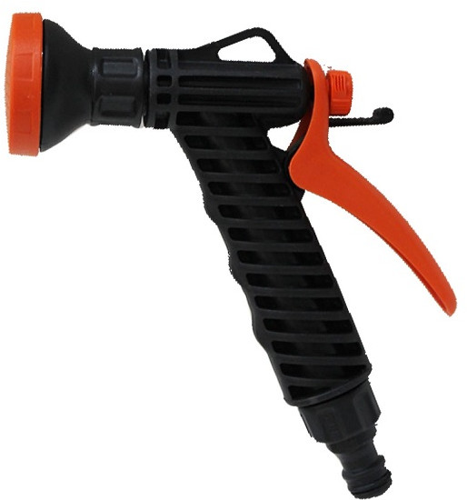 Полив начинается при нажатии на клавишу. Душ-пистолет благодаря мелким отверстиям в распылителе идеально подходит для щадящего полива небольших растений.Душ-пистолет подаёт воду рассеянным потоком без возможности регулировки. Предусмотрен фиксатор клавиши в рабочем положении.