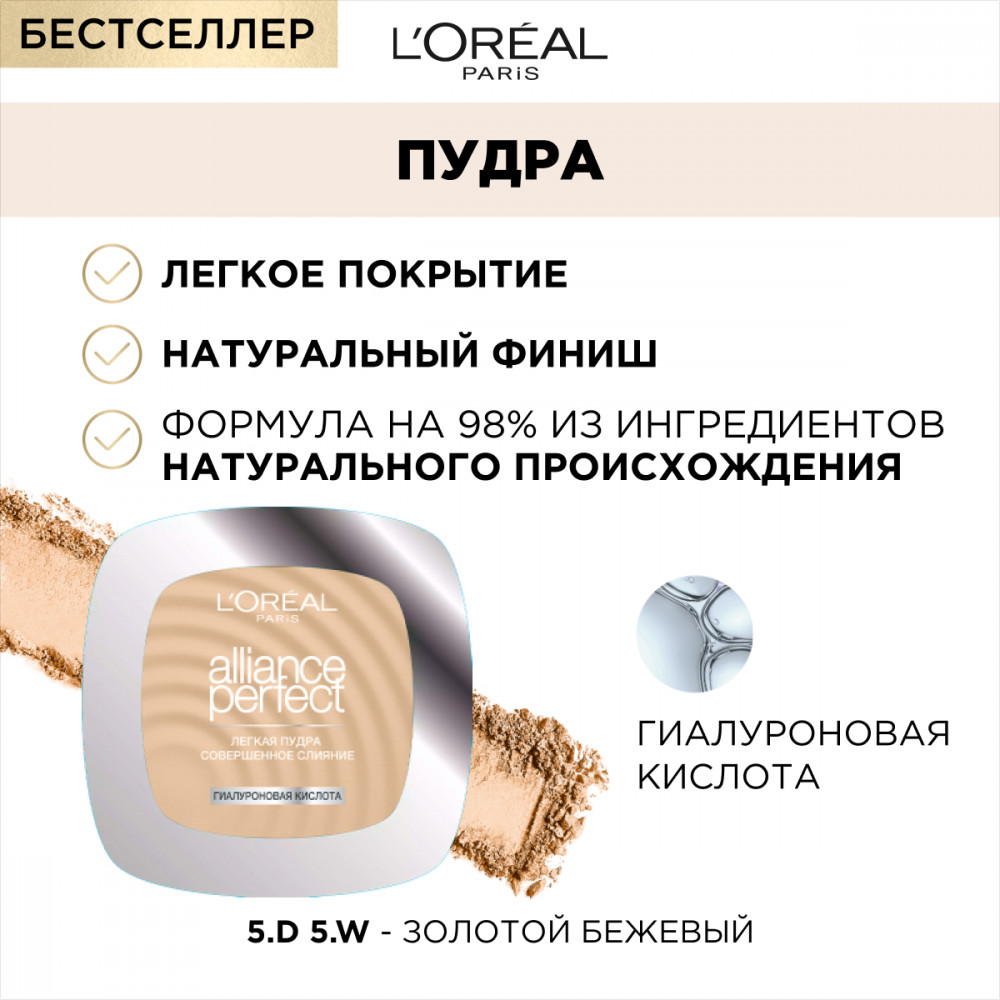 L'Oreal Paris Минеральная компактная пудра «Alliance Perfect», оттенок 5.D / 5.W