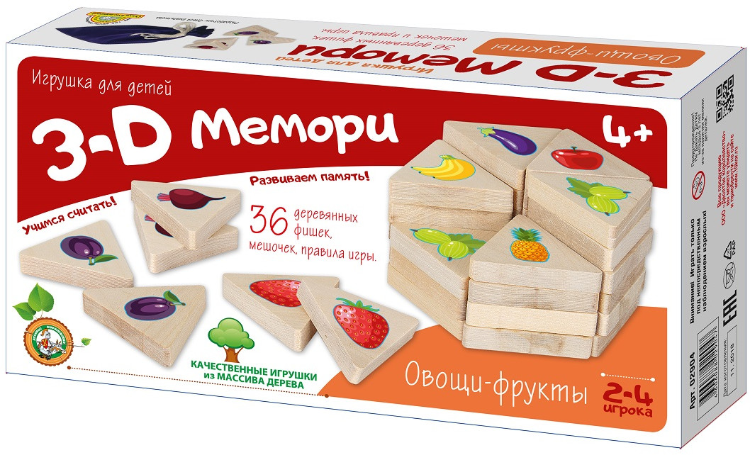 Десятое королевство Игра-мемори «Овощи-фрукты»В данный момент этот товар отсутствует в продаже. Возможно, у нас найдется аналогичный или похожий товар здесь. Игра-мемори для развития зрительной памяти. Детскому вниманию представлена компактная и красочная игра-мемори с изображением разных овощей и фруктов! Детали раскладываются изображением вниз и поочередно на несколько секунд открываются. По памяти нужно найти парные изображения и убрать с игрового поля. Игра заканчивается, когда будут убраны все карточки. Выигрывает тот, кто найдет большее количество парных картинок. |