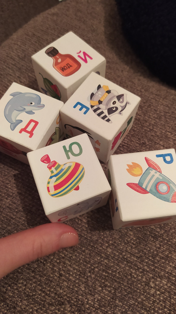 Качество кубиков отличное, прочные, изображение качественно нанесено. Углы закругленные, для ребенка актуально Будем пользоваться и изучать буквы. Спасибо за быструю доставку!