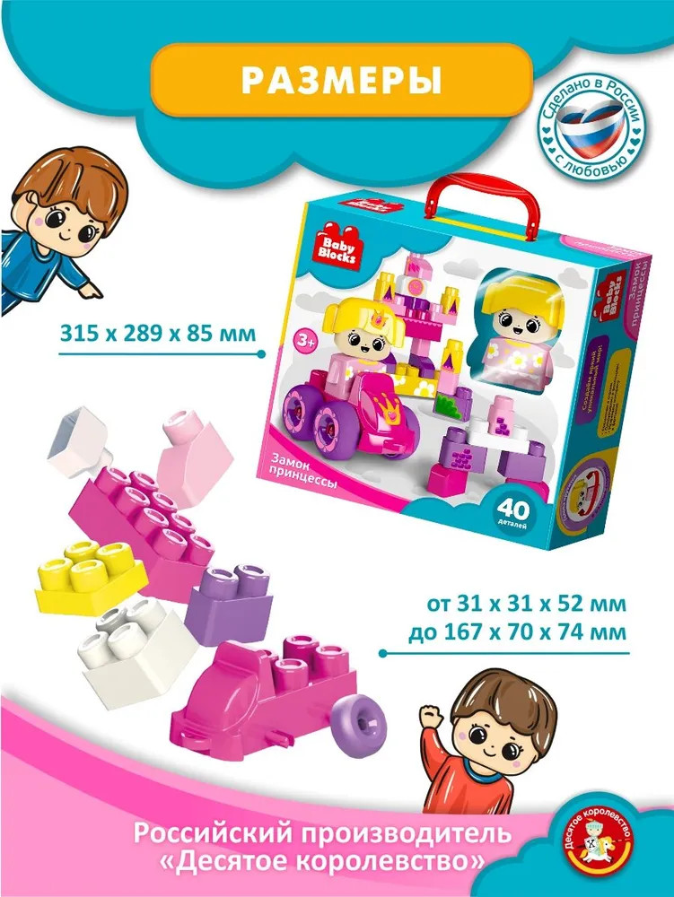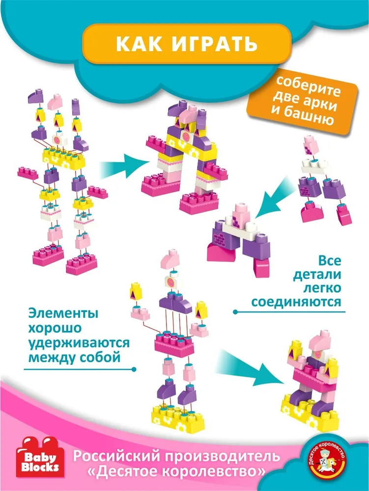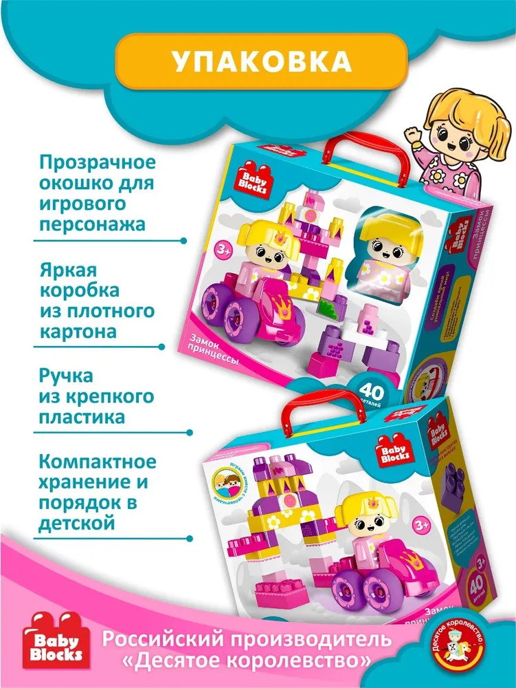 Десятое королевство Конструктор «Замок принцессы»В данный момент этот товар отсутствует в продаже. Возможно, у нас найдется аналогичный или похожий товар здесь. Серия: Baby Blocks Постройте настоящий замок принцессы с первым конструктором для вашего малыша от Baby Blocks! |