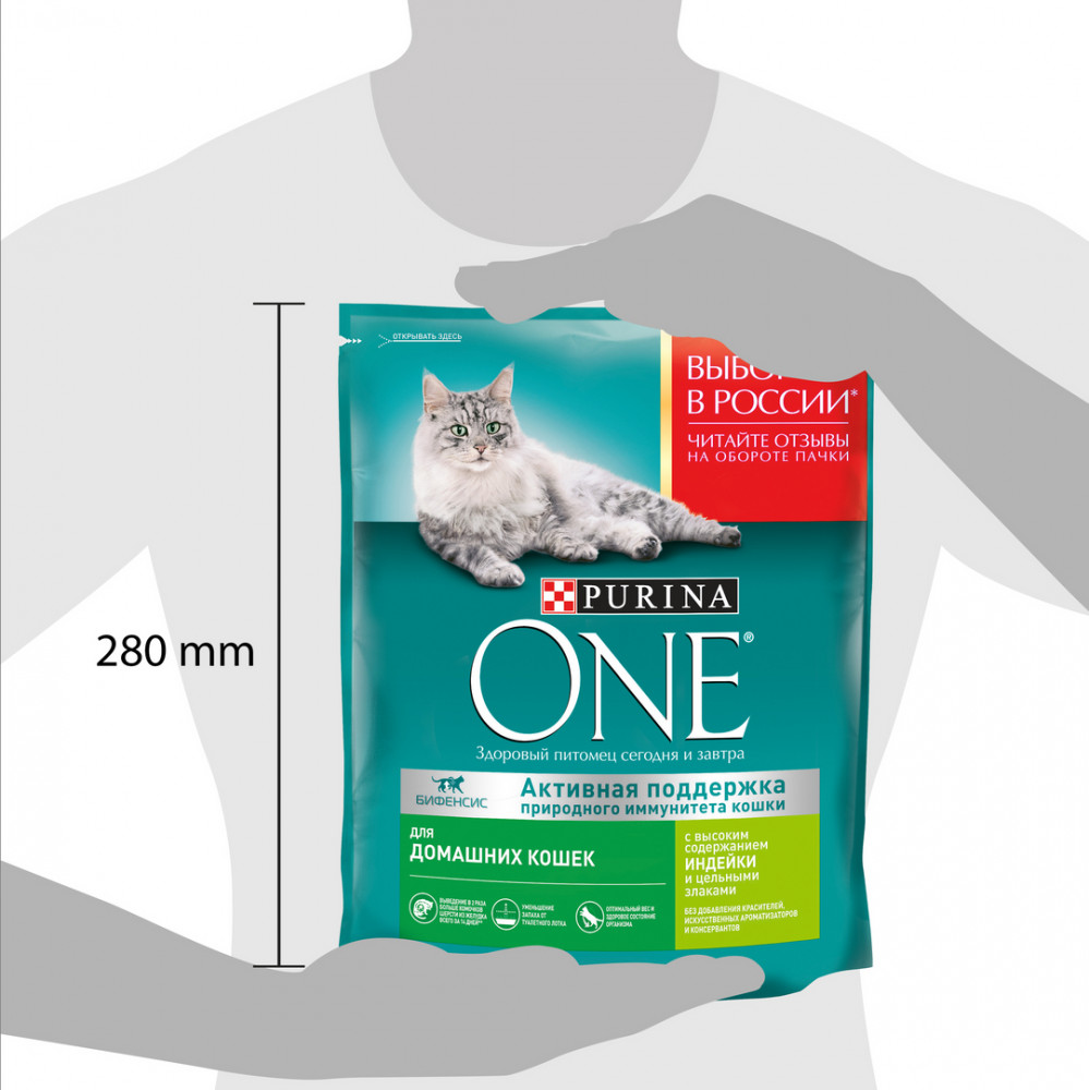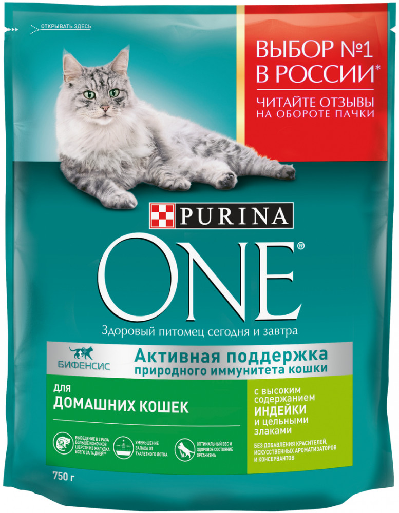 Purina ONE Корм сухой для домашних кошек с индейкой и цельными злаками