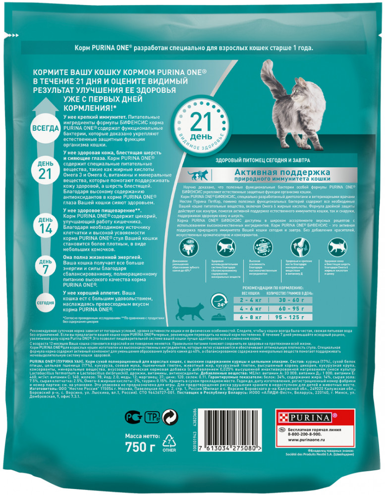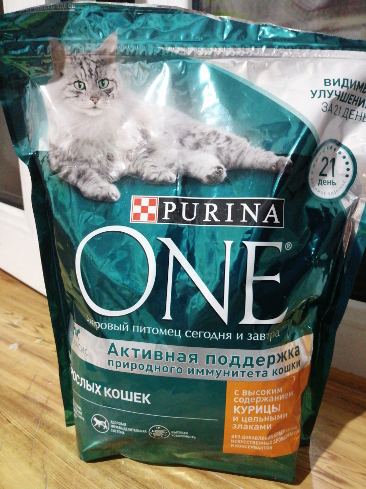 Purina ONE Корм сухой для кошек с курицей и цельным злаками+107 аппетит улучшение стула шерсть без резкого запаха подходит привередливым