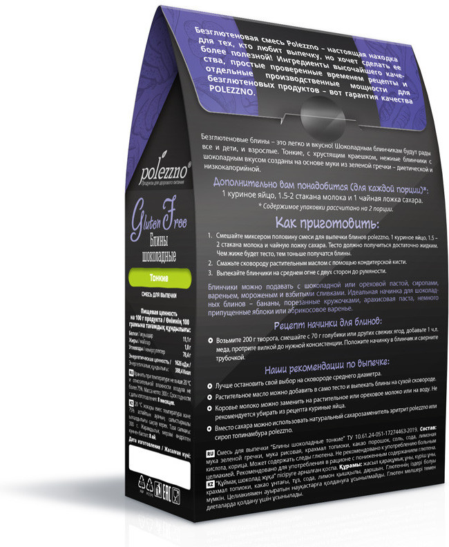 Polezzno Смесь для выпечки «Блины Шоколадные»В данный момент этот товар отсутствует в продаже. Возможно, у нас найдется аналогичный или похожий товар здесь. Серия: Gluten Free Безглютеновые блины — это легко и вкусно! Шоколадным блинчикам будут рады все и дети, и взрослые. Тонкие, с хрустящим краешком, нежные блинчики с шоколадным вкусом созданы на основе муки из зеленой гречки — диетической и низкокалорийной. |