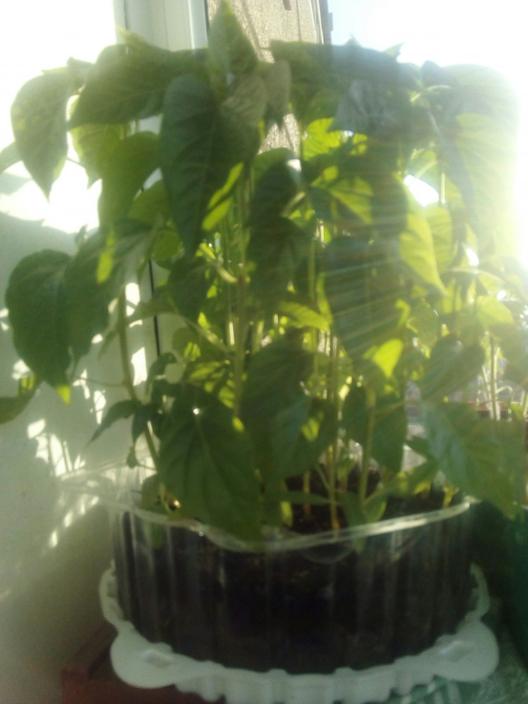 Садила этот перчик еще зимой с подсветкой. Когда на нем было уже несколько листиков, то он попал под кусь-набег моей кошки и остался почти без листвы, я даже думала, что не выживет. Но на мое удивление, он оклемался и хорошо пошел в рост. Правда высота на сегодняшний день уже 70 см, а не заявленные 50. Возможно, вытянулся, пока у нас неделю не было солнца и лили дожди. Один перчик уже почти полностью пожелтел, пару цветков он сбросил, и сейчас вот несколько цветочков на макушке готовятся зацвести. Балкон у меня на северной стороне, солнце есть только утром и вечером сбоку несколько часов. Как на вкус попробуем, дополню отзыв.