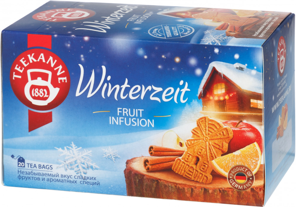 Teekanne Чай «Winterzeit»В данный момент этот товар отсутствует в продаже. Возможно, у нас найдется аналогичный или похожий товар здесь. Фруктовый чай с добавлением ароматных специй «Winterzeit» — это восхитительное сочетание сладких вкусов миндального печенья, апельсина, яблока и аромата корицы. Самый настоящий вкус зимних праздников — в каждой чашке. Напоминает вкус горячего глинтвейна. |