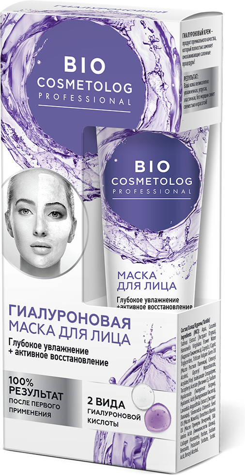 BioCosmetolog Крем-маска для лица гиалуроновая «Глубокое увлажнение и активное восстановление»+35