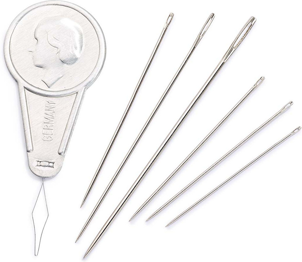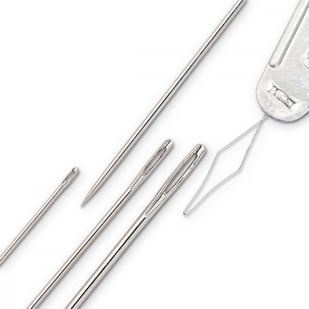 Стальные иглы различных размеров для шитья вручную, мелкого ремонта одежды и штопки. В комплекте прилагается нитевдеватель. |