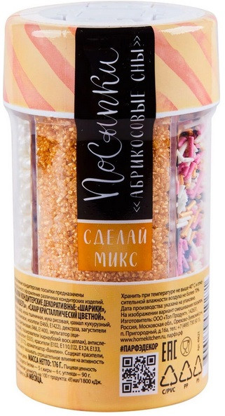 Парфэ Посыпки кондитерские «Абрикосовые сны»В данный момент этот товар отсутствует в продаже. Возможно, у нас найдется аналогичный или похожий товар здесь. Декоративные кондитерские посыпки предназначены для красочного оформления различных кондитерских изделий. Посыпки в секциях удобны в применении, разделение по ячейкам позволяет использовать каждый вид по-отдельности, а также есть уникальная возможность миксовать посыпки по своему вкусу, получая оригинальное быстрое украшение любимого изделия. |