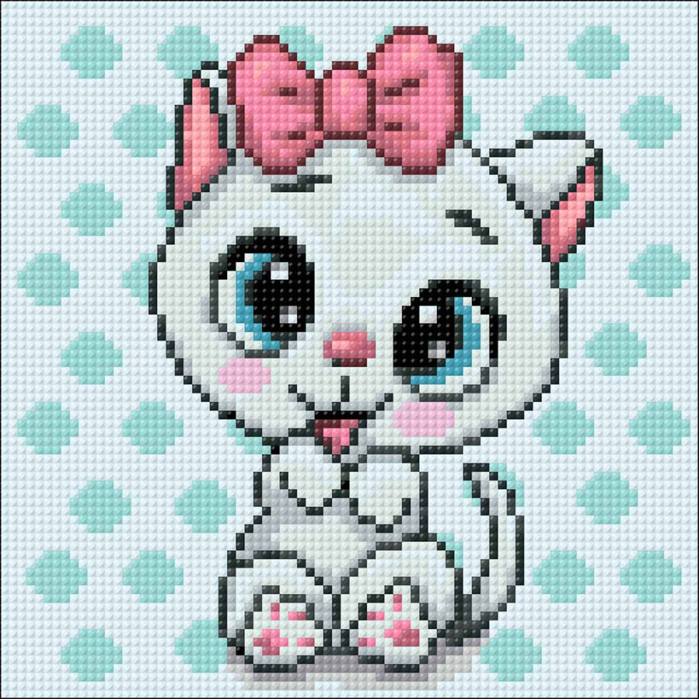 В наборе: полотно с нанесенным клеевым слоем и схемой, стразы квадратные (акриловые), пинцет, емкость для страз, инструкция.