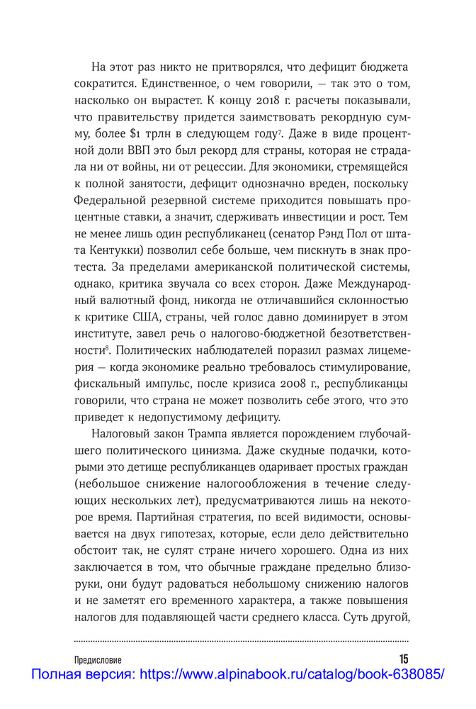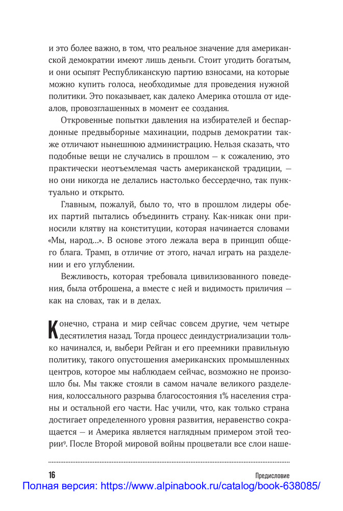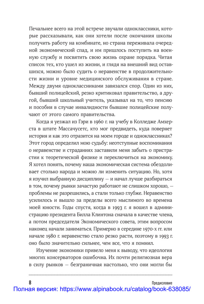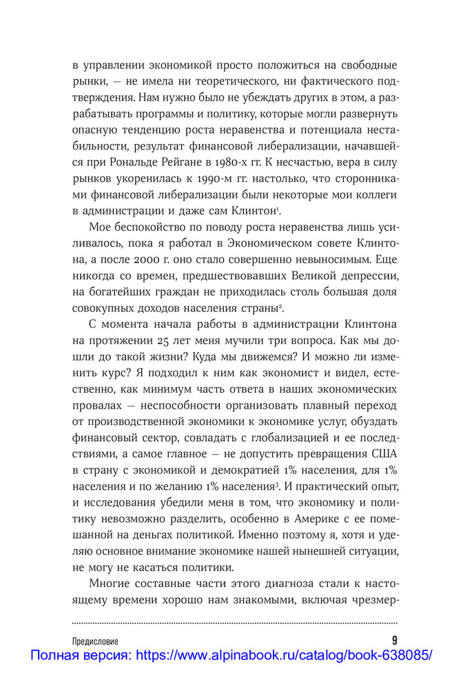 Люди, власть и прибыль. Прогрессивный капитализм в эпоху массового недовольстваВ данный момент этот товар отсутствует в продаже. Возможно, у нас найдется аналогичный или похожий товар здесь. Джозеф Стиглиц рассказывает, почему Америка, а вместе с ней и другие страны оказались в кризисе. Основная причина — слепая вера в эффективность рынков, в саморегулирование, в идею о том, что чем больше богатеют владельцы корпораций, тем лучше всем, так как они неизбежно обратят свои сверхдоходы в инвестиции. По мнению Стиглица, рынки неспособны эффективно работать без должного регулирования со стороны государства: иначе общество получает плохо управляемую глобализацию, возрастающую рыночную власть корпораций и ничем не оправданное неравенство доходов. |