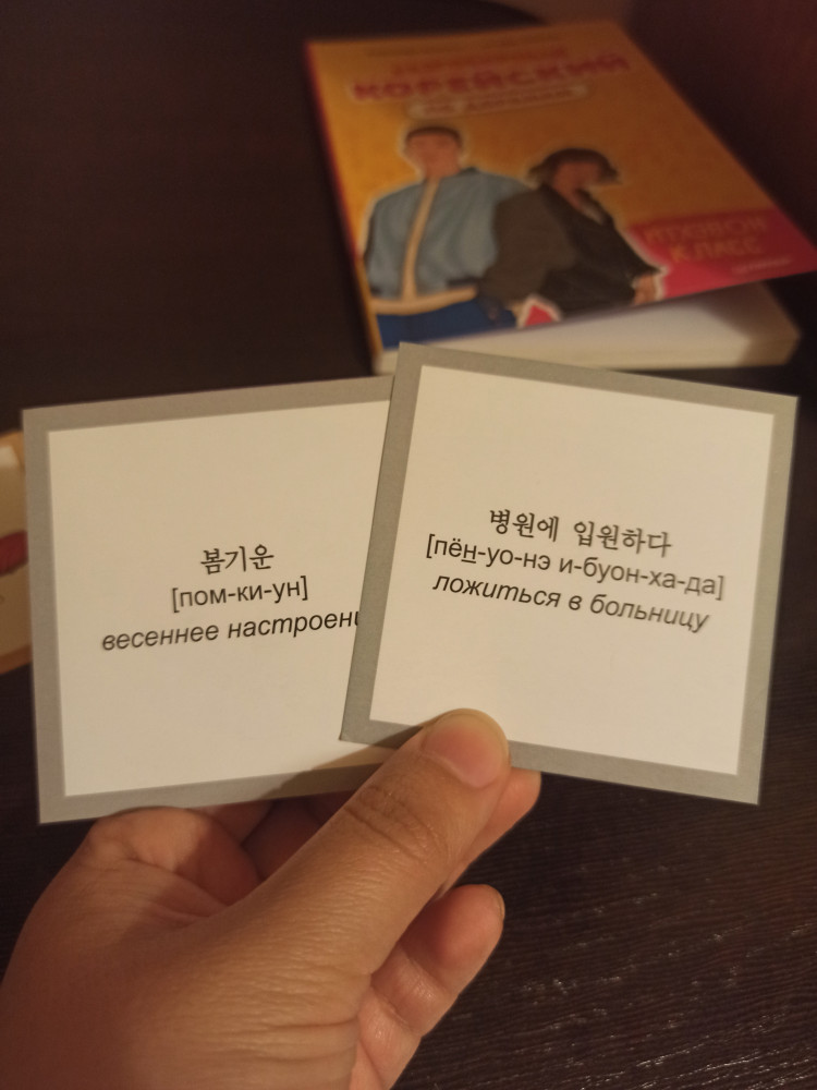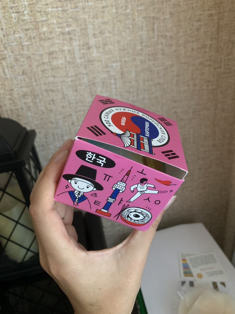 💳 Оплатить за товар можно при получении 🇰🇿 Есть бесплатная доставка по Казахстану от 1 дня 🎁 Копите бонусы с каждой покупки Серия: 500 самых нужных слов Флеш-карточки помогут запомнить и усвоить популярные слова и устойчивые выражения корейского языка. Слова сопровождаются ассоциативной картинкой, русскоязычной транскрипцией, облегчающей чтение, и переводом. Перейдя по QR-коду, вы сможете познакомиться с корейским алфавитом, а также прослушать аудиозапись, чтобы научиться правильно читать корейские буквы. |
