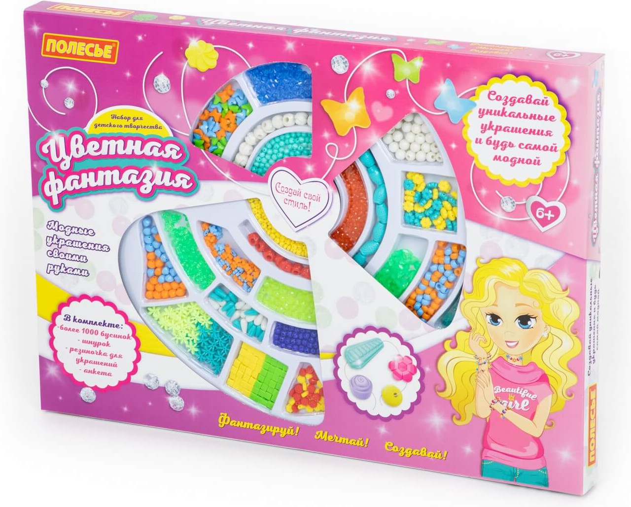 Полесье Набор для детского творчестваВ данный момент этот товар отсутствует в продаже. Возможно, у нас найдется аналогичный или похожий товар здесь. Серия: Цветная фантазия Набор для детского творчества «Цветная фантазия» позволит ребёнку почувствовать себя настоящим дизайнером бижутерии, а также научит создавать удивительные аксессуары! В комплект входит более 1000 бусинок, шнурок и резиночка для украшений. Все бусины имеют разную форму и цвет, выполнены из качественного пластика. Разнообразит игру и сделает её ещё интереснее анкета модницы, которая также входит в комплект. С таким набором ребёнок сможет фантазировать, творить, создавать своими руками и играть. Он способствует разностороннему развитию ребёнка. |