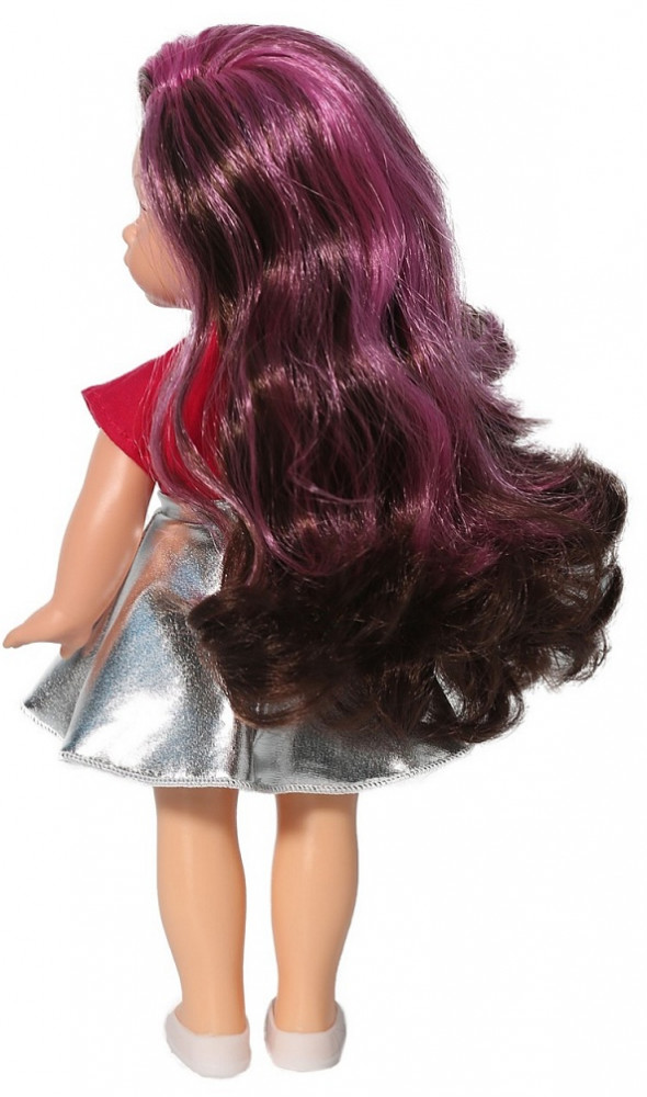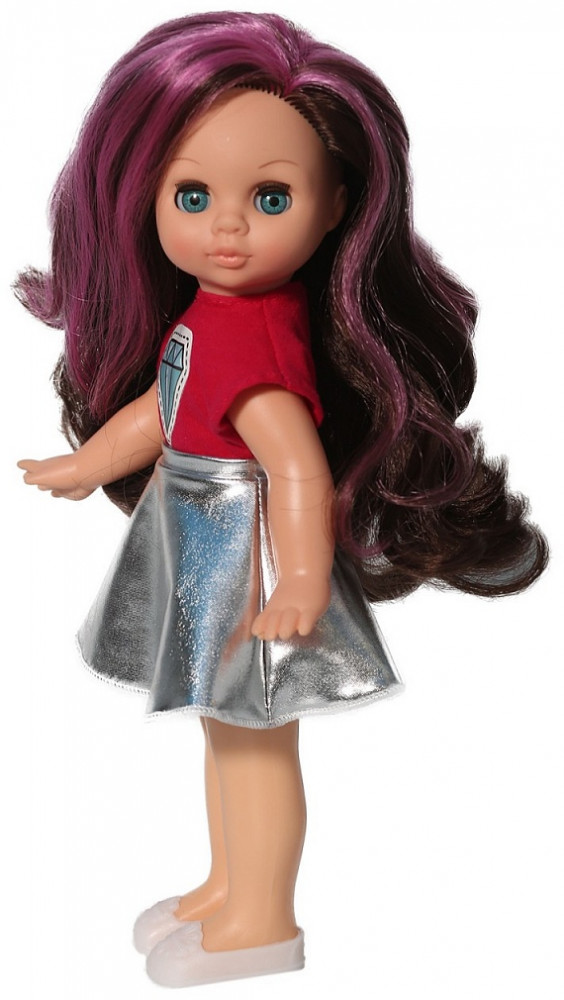 Фабрика игрушек «Весна» Кукла «Яркий стиль»В данный момент этот товар отсутствует в продаже. Возможно, у нас найдется аналогичный или похожий товар здесь. Серия: Эля Кукла «Яркий стиль» — это обновленный современный образ куклы в стильной одежде, с длинными волнистыми волосами с яркой розовой прядью. Эта очаровательная кукла может стать настоящей подружкой для ребенка. У нее красивые глазки, пушистые ресницы и мягкие волосы, которые можно завивать, расчесывать, укладывать в разные прически, меняя образ куклы. Небольшой рост куклы позволяет брать ее с собой в путешествия. В комплект одежды входят трикотажная футболка с коротким рукавом и наклейкой «кристалл», серебристая расклешенная юбка из парчового трикотажа. Вся одежда застегивается сзади на липкую ленту. На ногах — туфельки. |
