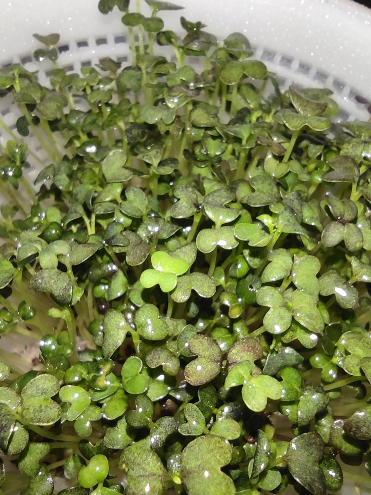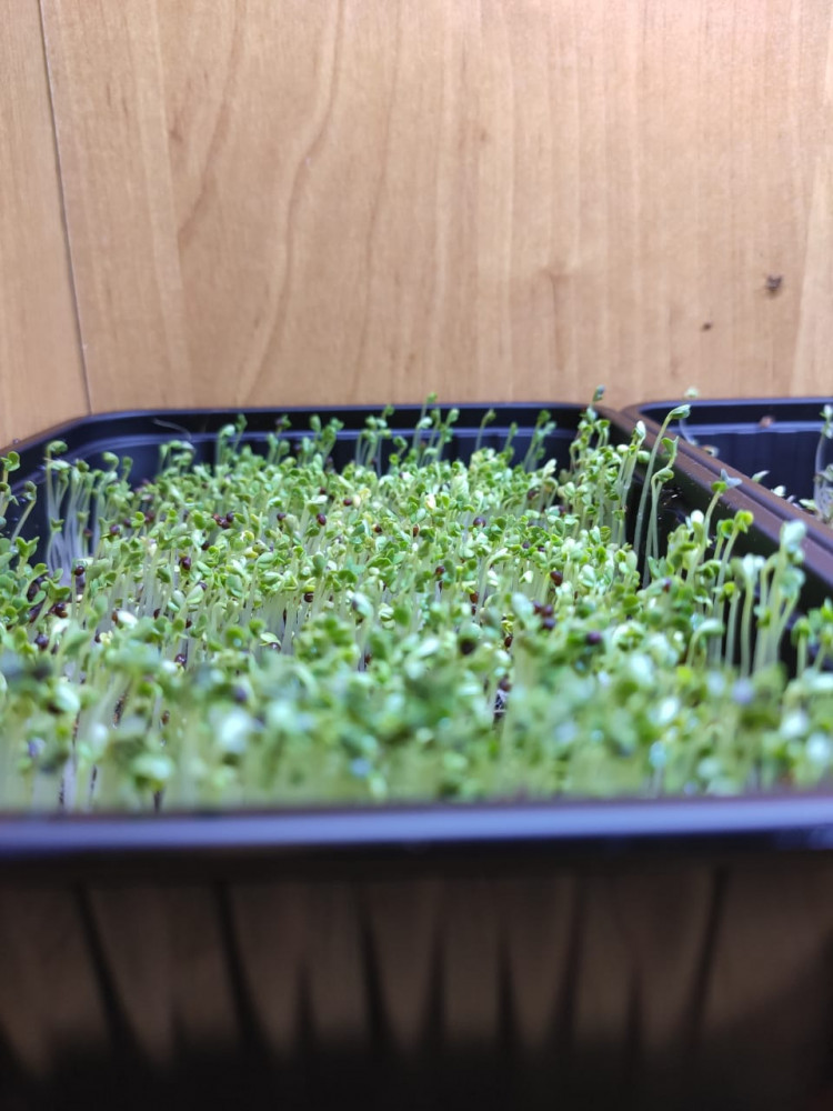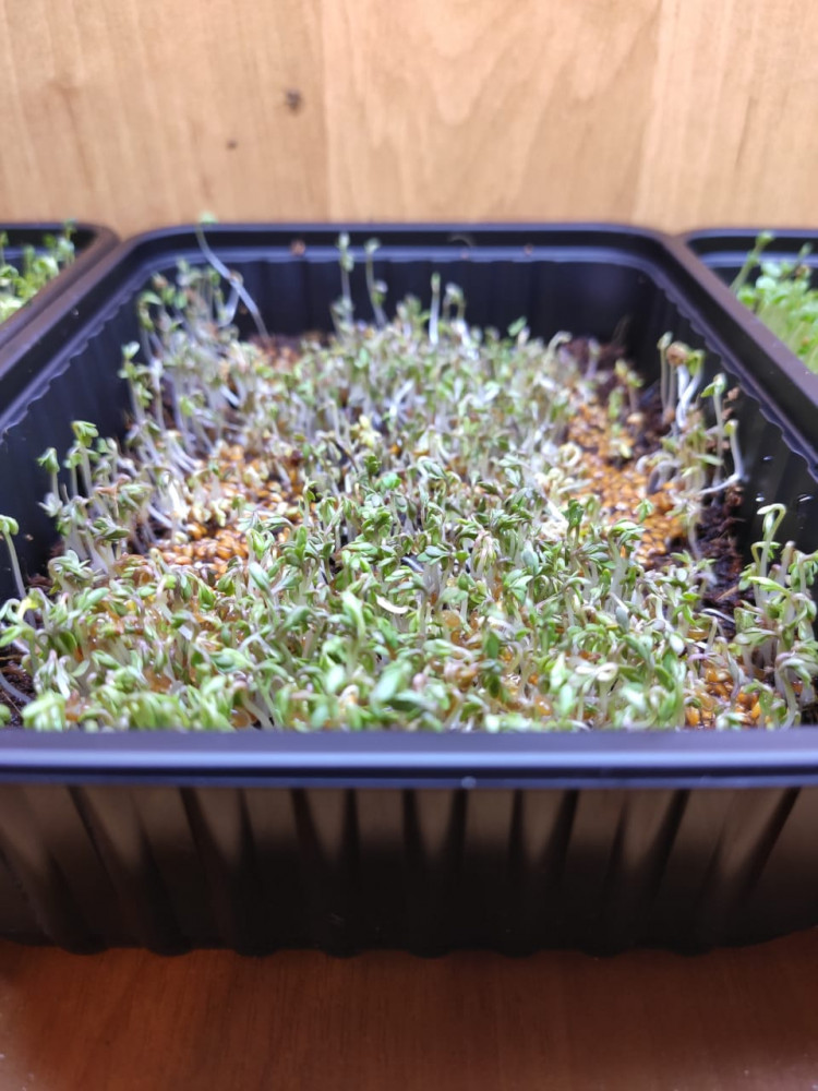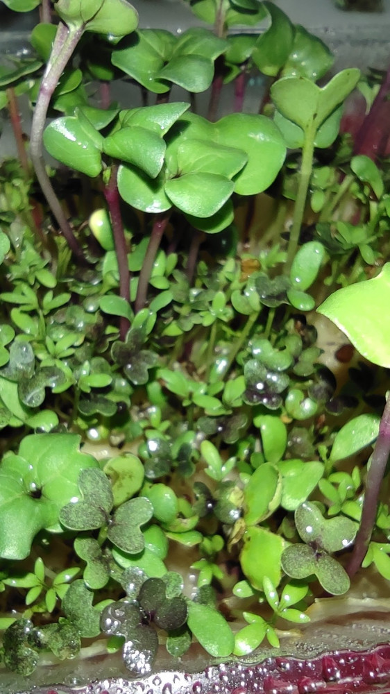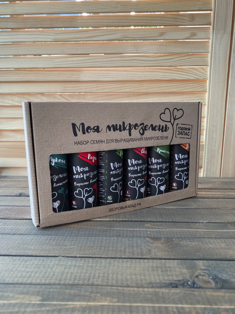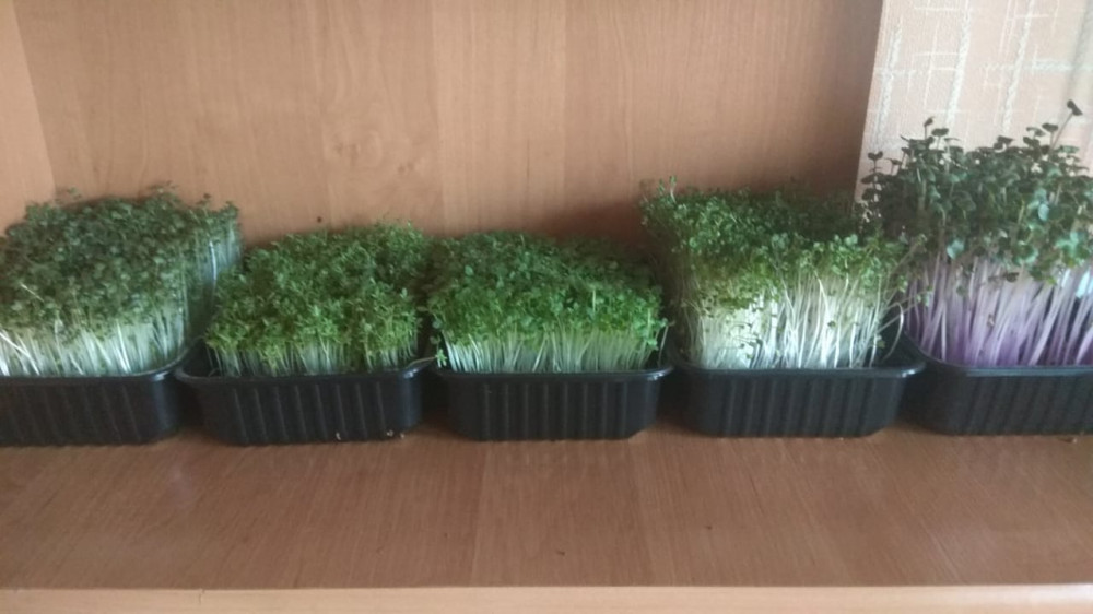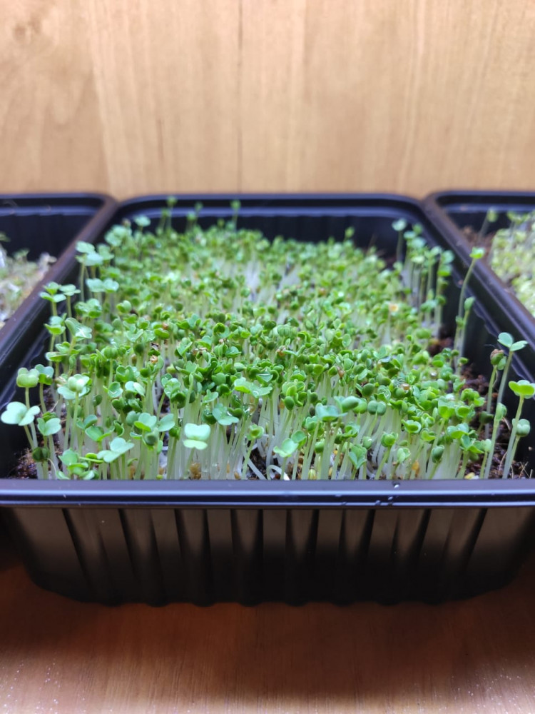 забыла написать, что наборы могут отличаться по составу. В моём наборе: рукола, редис, мицуна, кресс-салат, брюква и микс семян. В микс семян входит люцерна, мицуна, кресс-салат и редис.