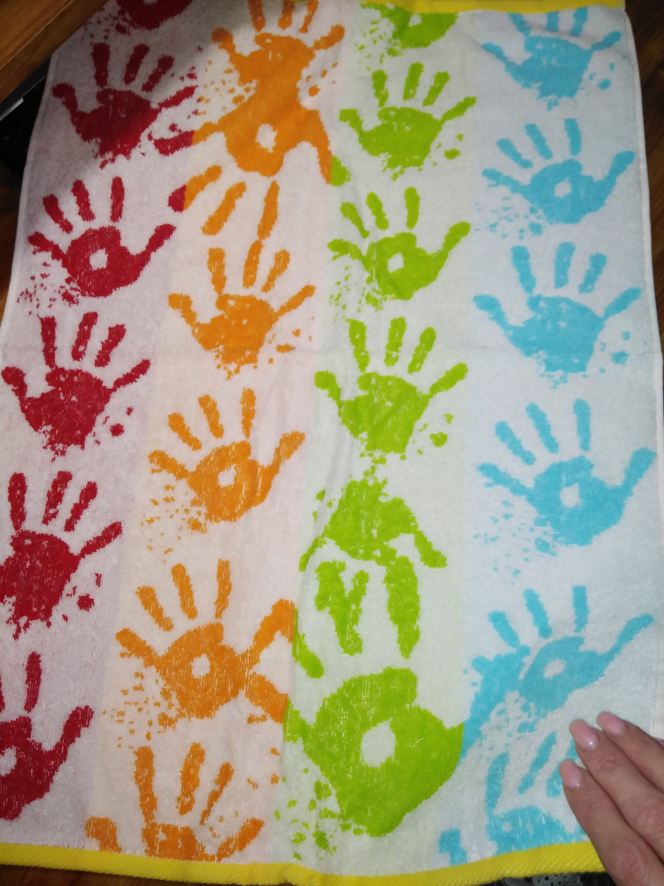 Очень классное полотенчико. Яркое, качество на высшем уровне, мягкое, хорошо впитывает влагу. Радует глаз.