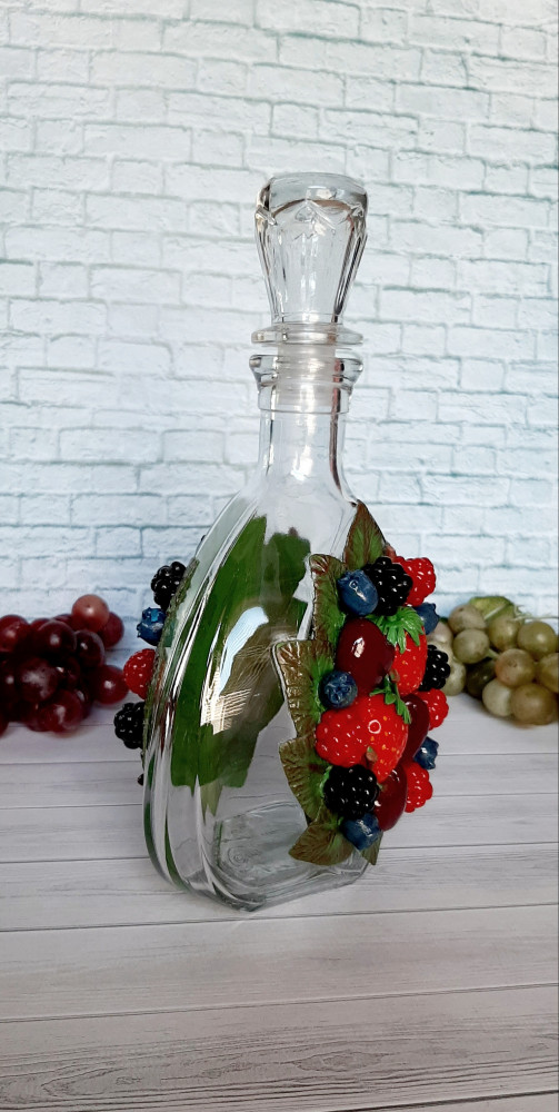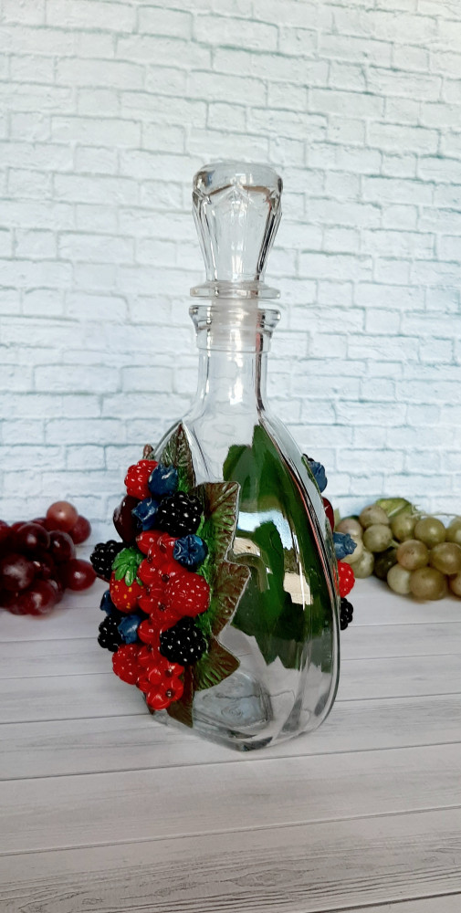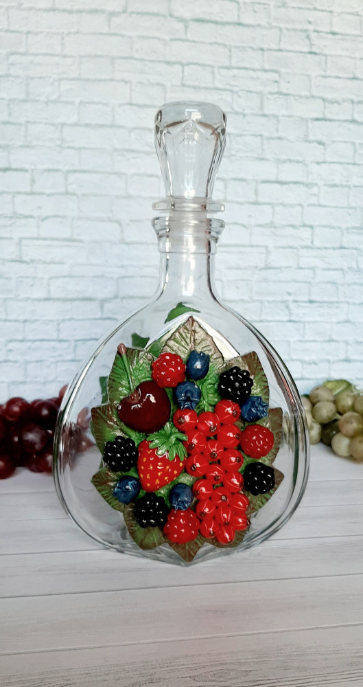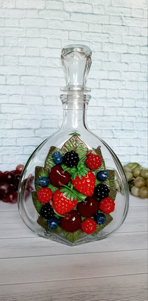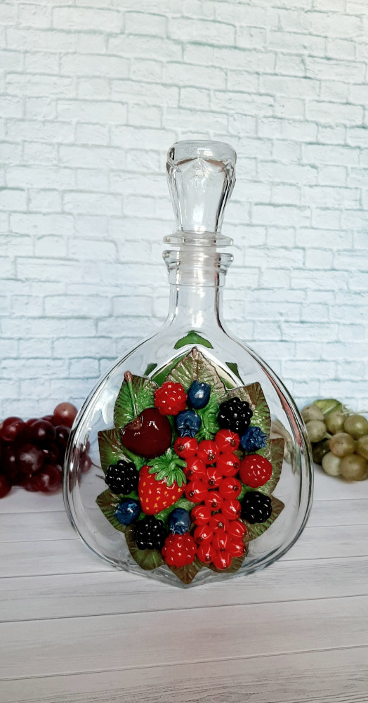 Купила этот штоф для декора и на подарок другу. Штоф с декором, с двух сторон, из запекаемой полимерной глины стал ещё красивее и интереснее. Рекомендую.