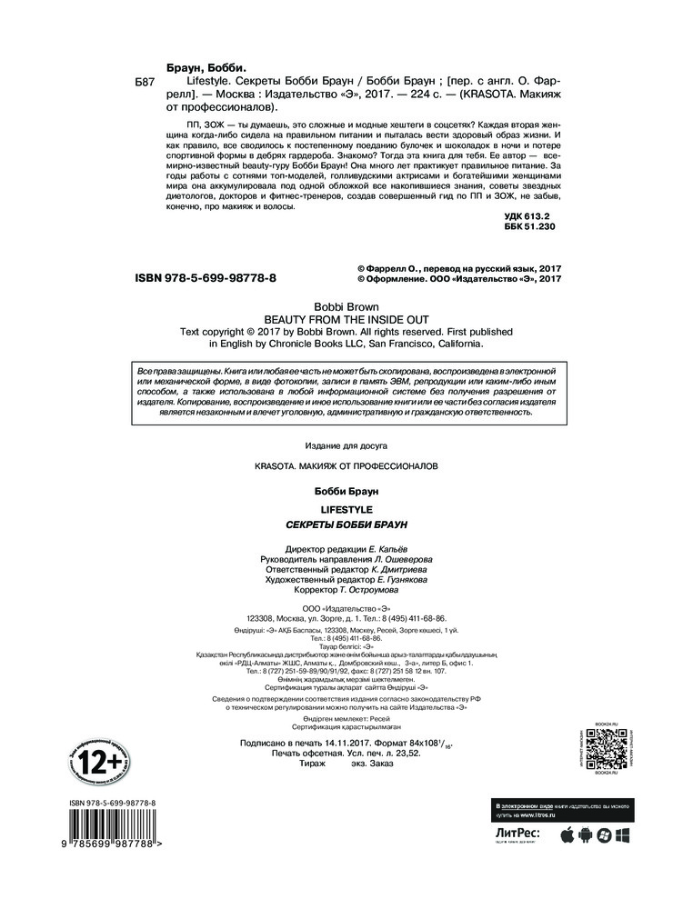 Красота. ПерезагрузкаВ данный момент этот товар отсутствует в продаже. Возможно, у нас найдется аналогичный или похожий товар здесь. Серия: KRASOTA. Макияж от профессионалов ПП, ЗОЖ — ты думаешь, это сложные и модные хештеги в соцсетях? Каждая вторая женщина когда-либо сидела на правильном питании и пыталась вести здоровый образ жизни. И как правило, все сводилось к постепенному поеданию булочек и шоколадок в ночи и потере спортивной формы в дебрях гардероба. Знакомо? Тогда эта книга для тебя. Ее автор — всемирно-известный beauty-гуру Бобби Браун! Она много лет практикует правильное питание. За годы работы с сотнями топ-моделей, голливудскими актрисами и богатейшими женщинами мира она аккумулировала под одной обложкой все накопившиеся знания, советы звездных диетологов, докторов и фитнес-тренеров, создав совершенный гид по ПП и ЗОЖ, не забыв, конечно, про макияж и волосы. |