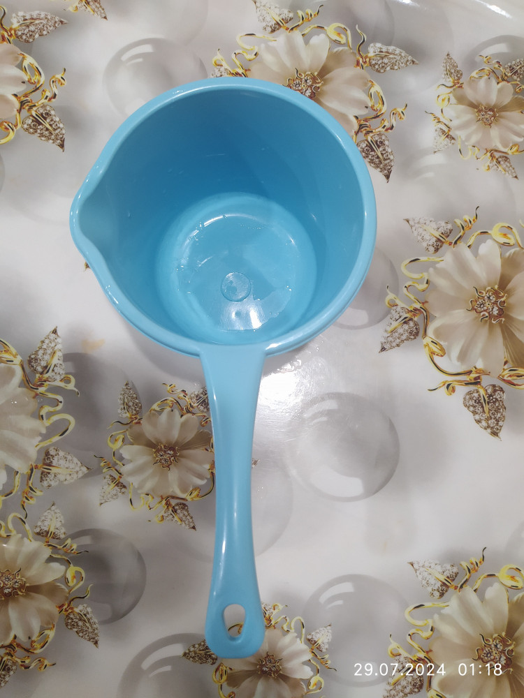 ковшик супер, прислали розовый, главное, пластмасса качественная и имеется носик, что удобно при разливе