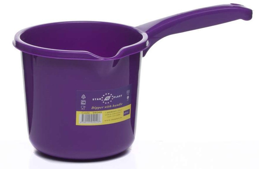 Ковш хороший, качество пластика отличное. В руке удобно держать ковш. Размер обьема воды в самый раз. Не большой и не маленький. Единственный минус цвет. Хотел фиолетовую как на главном фото. Прислали бледно голубую. А так рекомендую 👍