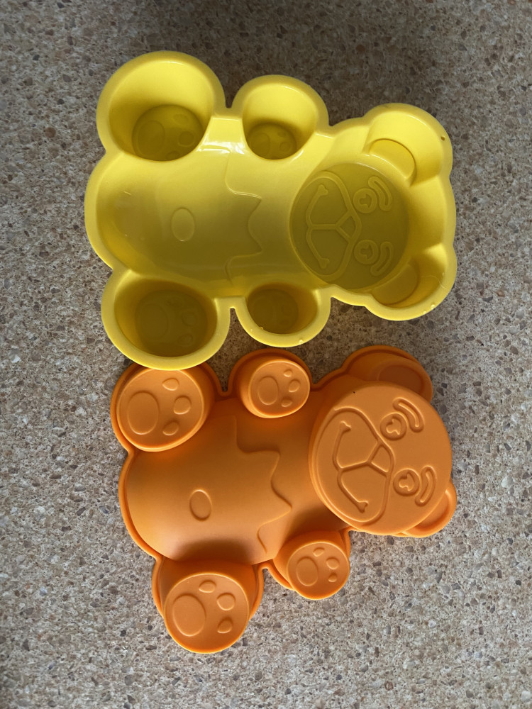 Пришли 2 цвета -желтый и оранжевый. Формы понравились, пищевой силикон.
