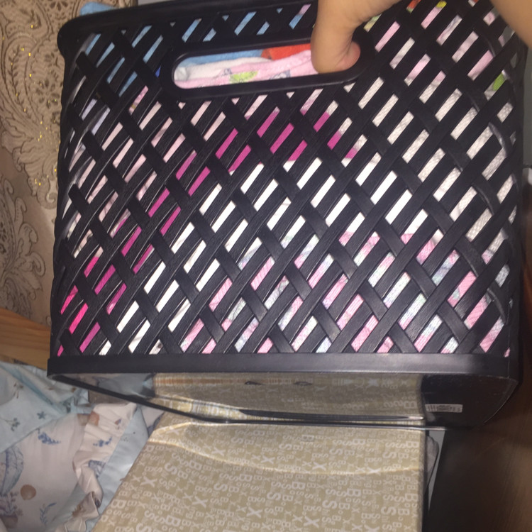 Немного шью и, как следствие, лоскуты, остатки, которые еще можно использовать в дело. Приобрела "Плетенку" и сложила все это в нее - получилось компактно и полку в шкафу привела в порядок. Корзина очень прочная, думаю выдержала бы и более серьезные нагрузки. Пластик качественный, очень гладкий. В моем случае, дырочки помогают увидеть то, что лежит внутри, что мне очень удобно. Спасибо, я довольна.