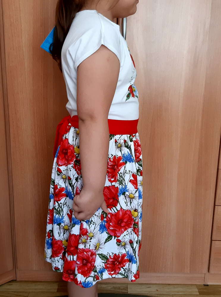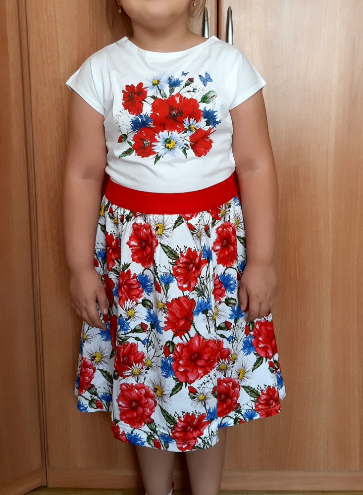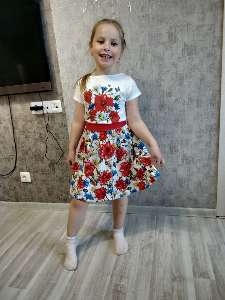 Платье очень понравилось. Яркое, приятное для тела ребёнка. Тонкий трикотаж. Посмотрим, как после стирки будет. Немного не угадала с размером, чуть большеватое.