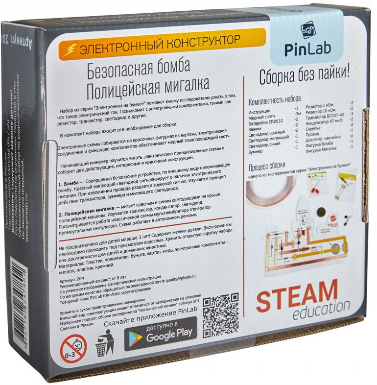 | PINLAB Конструктор «Безопасная бомба. Полицейская мигалка»