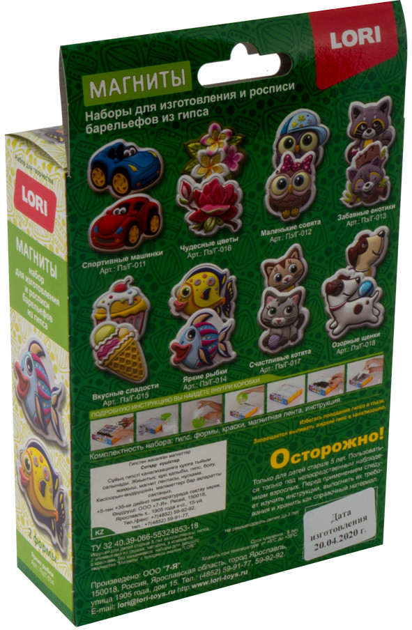 Lori Набор для изготовления магнитов из гипса «Яркие рыбки»В данный момент этот товар отсутствует в продаже. Возможно, у нас найдется аналогичный или похожий товар здесь. Серия: Магниты Удивительный набор для детского творчества от бренда Lori позволит мальчикам и девочкам интересно провести досуг, самостоятельно создав из гипса различные фигурки. В технологическом плане процесс изготовления барельефа несложен. После отлива фигурок в специальных формочках, необходимо раскрасить получившихся животных, а затем прикрепить к холодильнику или любой металлической поверхности. |
