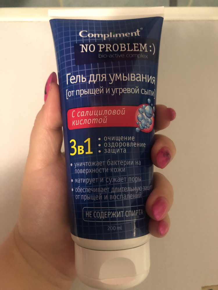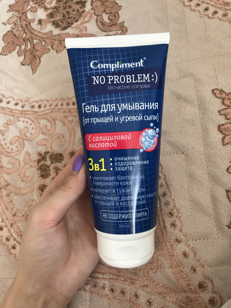 Compliment Гель для умывания 3 в 1 с салициловой кислотой+53 против прыщей хорошо очищает хорошо пенится экономичный расход сушит кожу