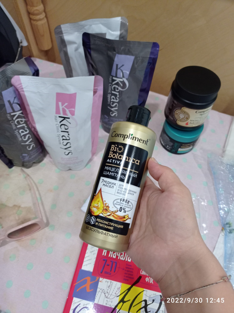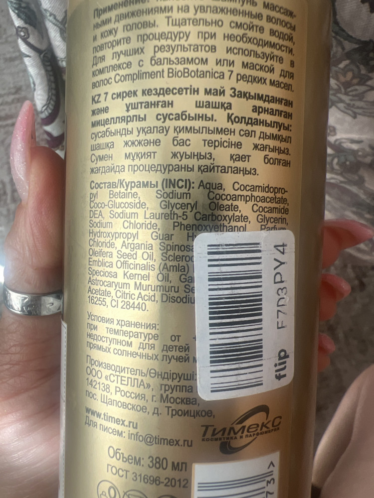 Compliment Шампунь для волос мицеллярный «7 редких масел»+19 приятный запах без сульфатов шелковистые блестящие хорошо очищает