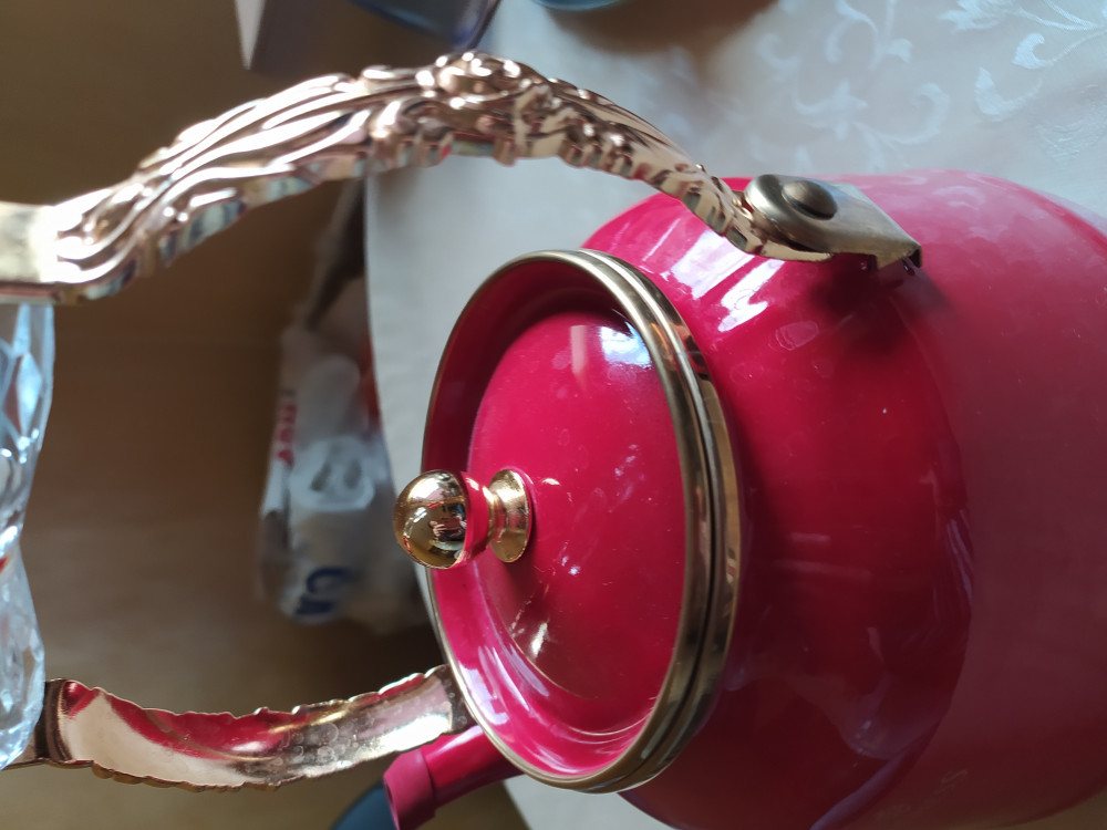 Ручка чайника сильно нагревается, без приспособления руками нельзя взять.