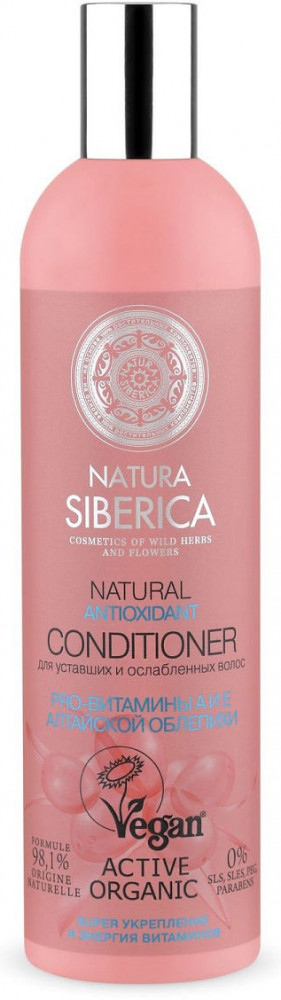 Aqua with infusions of hippophae rhamnoides fruit extractwh*(органический экстракт алтайской облепихи), hippophae rhamnoides fruit oil* (органическое масло алтайской облепихи), rhodiola rosea root extract* (органический экстракт родиолы розовой), sorbus aucuparia fruit extractwh* (органический экстракт рябины сибирской), juniperus sibirica needle extractwh* (органический экстракт можжевельника сибирского), melilotus albus flower/leaf/stem extract* (органический экстракт донника белого), spiraea ulmaria extract* (органический экстракт таволги сибирской), bidens tripartita flower/leaf/stem extractwh* (органический экстракт полярной череды), agrostis stolonifera extractwh* (органический экстракт полевицы сибирской), geranium sibiricum extractwh* (органический экстракт герани сибирской), cetearyl alcohol, polyquaternium-91, behentrimonium chloride, guar hydroxypropyltrimonium chloride, polyquaternium-37, hydrolyzed wheat protein (растительный про-коллаген), cetrimonium bromide, panthenol (провитамин в5), retinyl palmitate (витамин а), tocopherol (витамин е), sodium ascorbyl phosphate (витамин с), hippophae rhamnoidesamidopropyl betainehr, benzyl alcohol, sodium benzoate, potassium sorbate, citric acid, parfum. (*) – органические ингредиенты (wh) – органические экстракты дикорастущих растений сибири (hr) – производное облепихового масла.