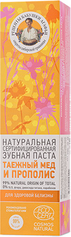 Рецепты Бабушки Агафьи Зубная паста для здоровой белизны зубов «Таёжный мёд и прополис»