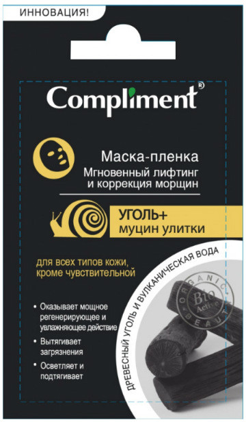 Compliment Маска-пленка для лица с углем и муцином улитки