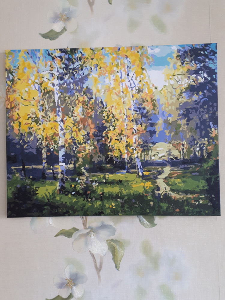 Эту картину рисовать было, одно удовольствие. Получилась яркая,солнечная. Краски свежие,холст хороший.