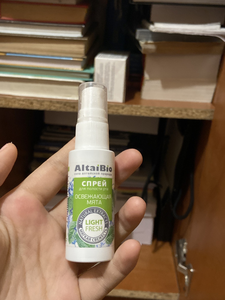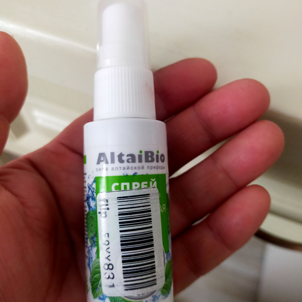 Простенький спрей. Освежает, немного помогает при кашле. Из минусов: широкий угол распыления, по типу по усам текло, в рот не попало))